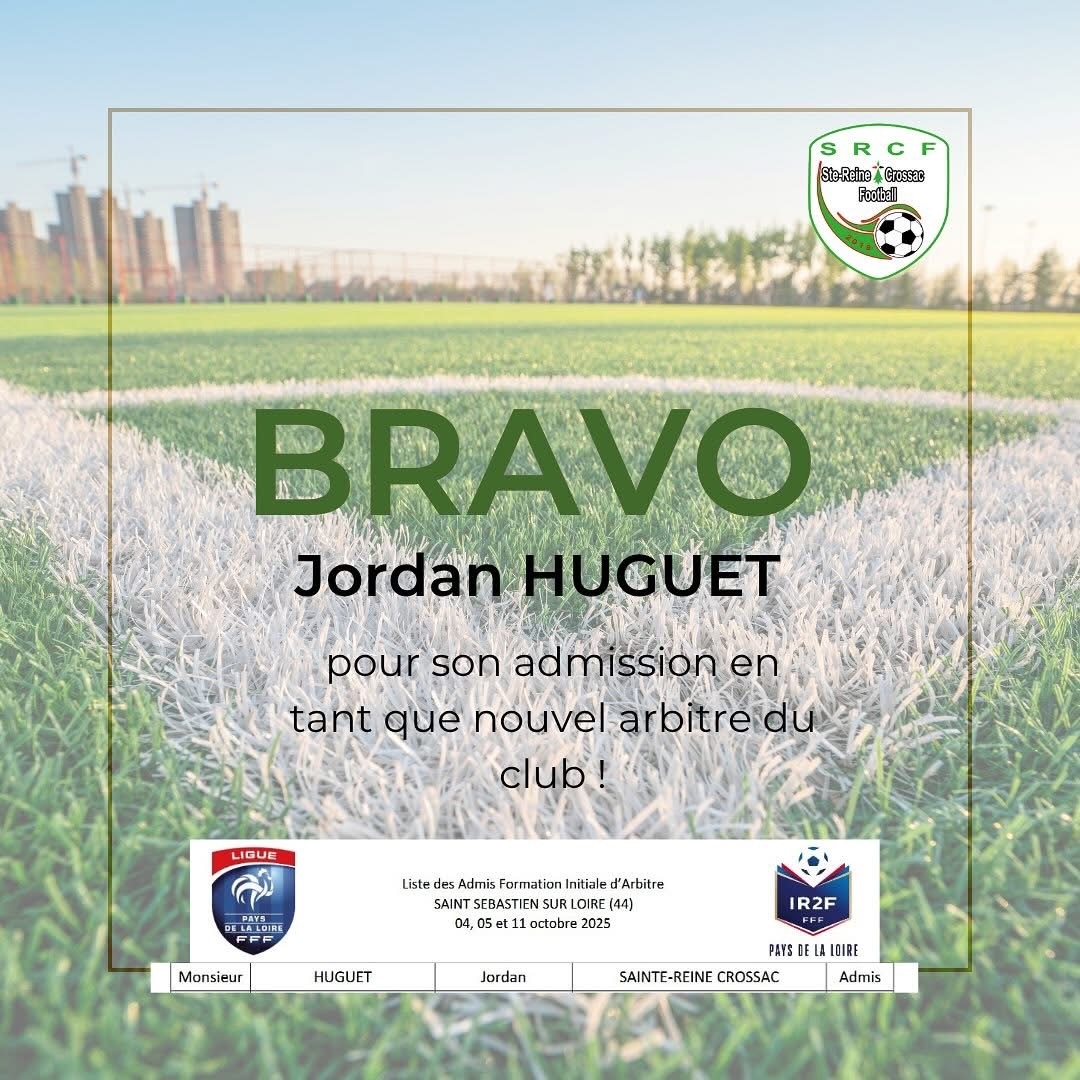 Le SRCF est fier d’annoncer l’admission de Huguet Jordan en tant qu’arbitre au club ! ⚽️🟢🔴